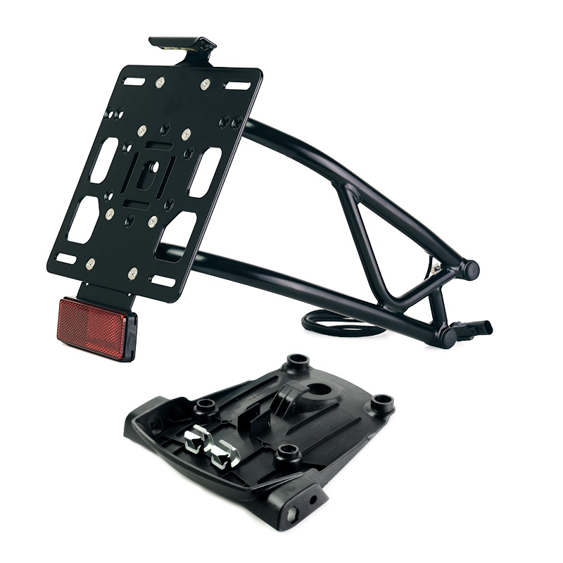 Es besteht aus Stahlrohr mit einer mattschwarzen Epoxidpulverbeschichtung und wird komplett mit einem Kennzeichenhalter und Reflektor aus Aluminium geliefert und ist in zwei Versionen erhältlich: EU-Modell und US-Modell. (Wählen Sie das Modell aus dem Dropdown-Menü).