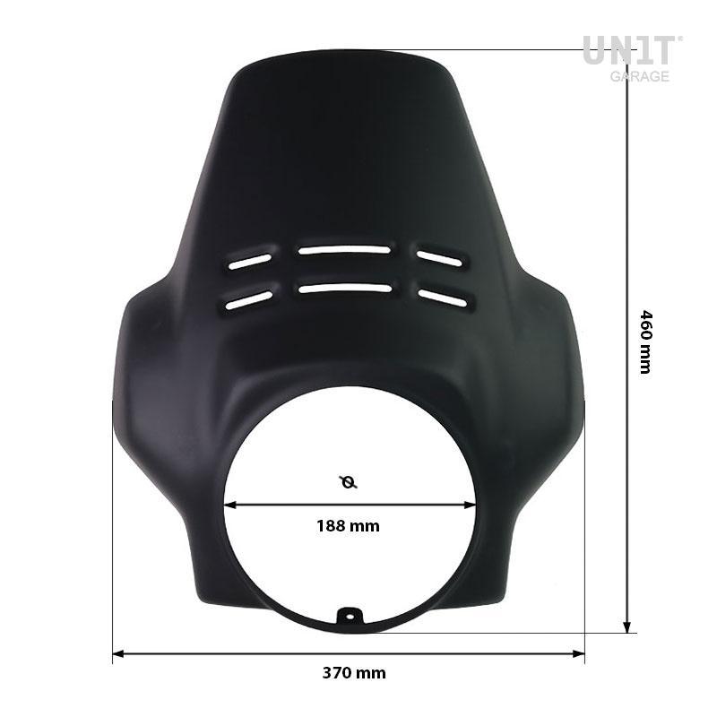 Es passt leicht auf den Riser Cod. 1504 und ermöglicht die Unterbringung des Scheinwerfers, des hohen Kotflügels, der originalen Pfeile und optionalen Kuppeln.