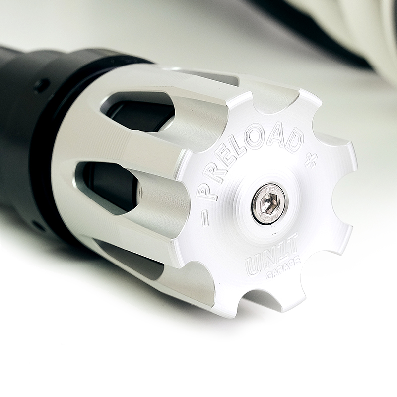 Aus massiver, hochwertiger Aluminiumlegierung gefräster Knopf, ersetzt den originalen Kunststoffknopf an der Vorspannung des originalen Stoßdämpfers.