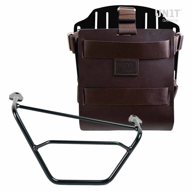 Taschenhalter aus Aluminium mit verstellbarer Lederfront, Schnellkupplung und Rahmen