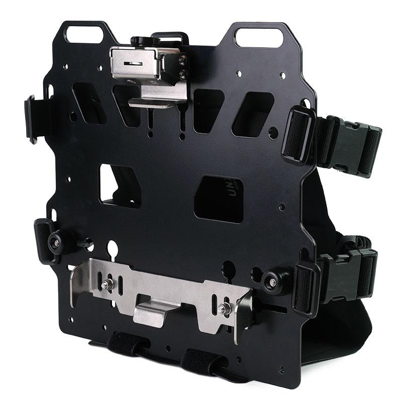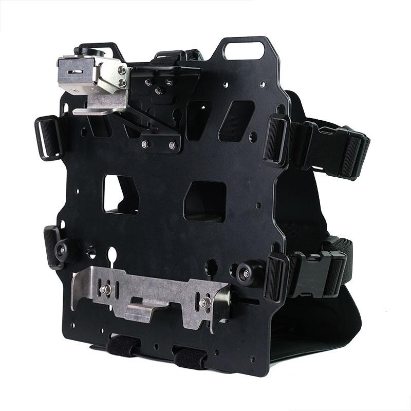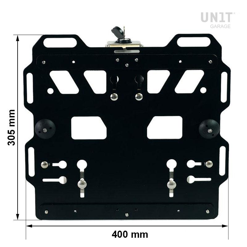 Rückplatte aus Aluminiumlegierung mit Schnellkupplung und Edelstahlschloss Maximale Gesamtabmessungen Höhe 30,5 cm Breite 40 cm