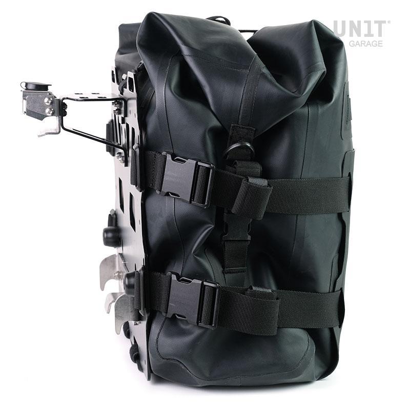 Lässt sich in Sekundenschnelle an klassischen Atlas-Aluminiumrohrrahmen montieren, ohne zusätzliche Adapter hinzuzufügen, alles ist im Lieferumfang enthalten. Es kann auch leicht an die meisten Rohrrahmen mit 18 mm Durchmesser auf dem Markt angepasst werden, wie z. B. OEM-BMW-Rahmen.   Für extreme Beanspruchung empfehlen wir die Verwendung der Haken an der Platte und der seitlichen Schlaufen zur Befestigung zusätzlicher horizontaler Bänder, wie z. B. unser Code UG008.