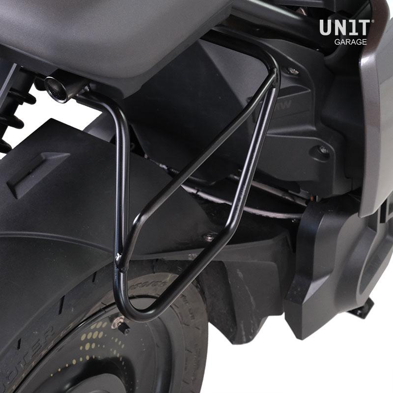 Entworfen auf dem Rahmen des BMW CE 04, integriert es sich perfekt in den Rest des Motorrads. Bereit für unser schnelles, schönes und minimales Befestigungssystem, auch wenn die Tasche nicht montiert ist. Es kann bequem mit dem Passagier an Bord verwendet werden.