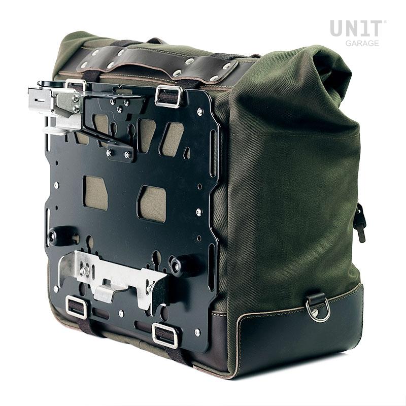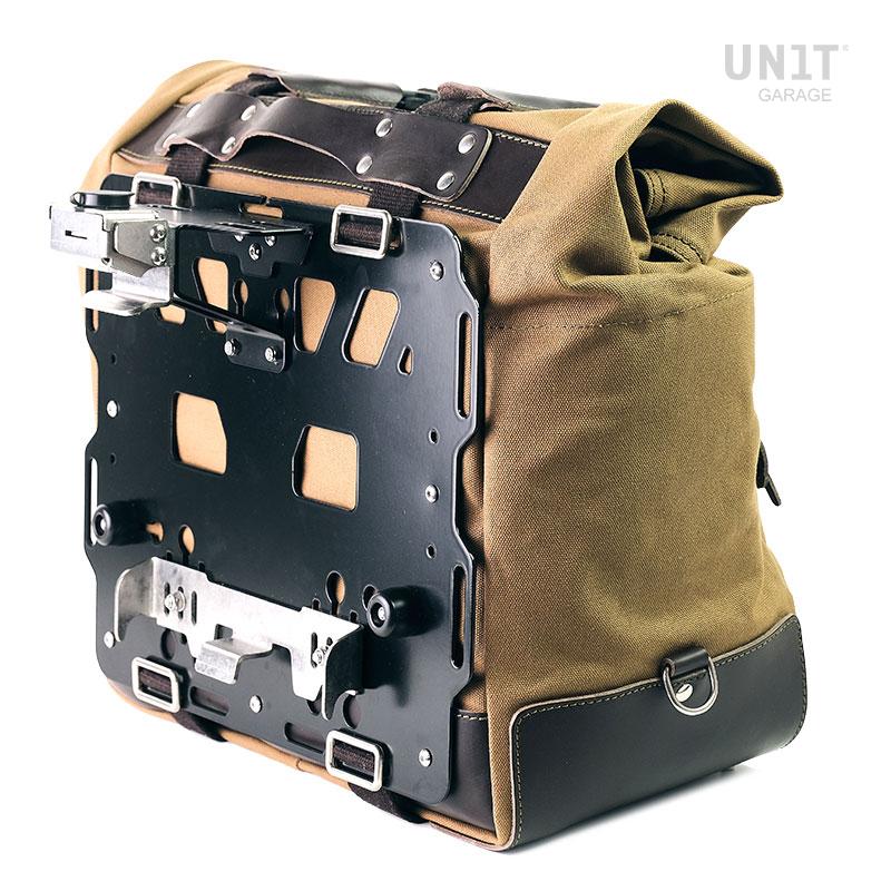 Einfach und rein wie die Materialien, mit denen es gebaut wurde. In Italien handgefertigte Tasche aus robuster wasserdichter Baumwolle von höchster Qualität. Liebe zum Detail mit 3 mm Lederoberflächen. Universell und an alle Motorräder anpassbar, durch einfaches Verschieben der Einstellung der Mittelbänder können Sie die Höhe vom Boden ändern. Die Rückseite der Tasche ist mit Stoffhaken zur Befestigung am Fahrrad ausgestattet. Auf der Vorderseite eine große Tasche mit Reißverschluss für Handy und Dokumente. Nach dem Absteigen können sie mit einem der zentralen Bänder über der Schulter oder über der Schulter getragen werden