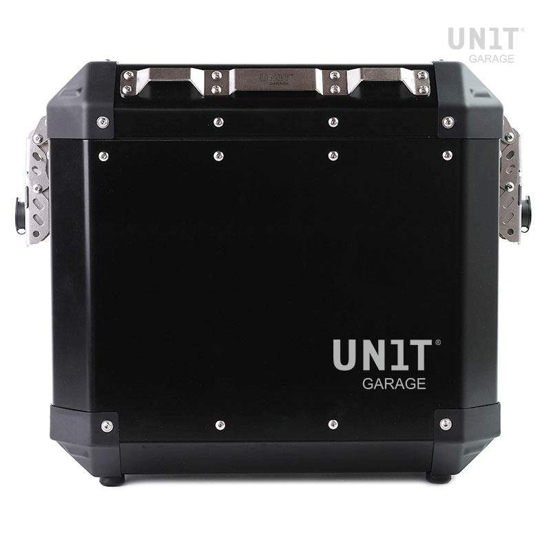 Wir wollten elegante, klassische und robuste Taschen mit schönen Stahlreißverschlüssen und durchdachten Details: Details, die für Abenteuer geschaffen und allen Bedingungen standhalten. Dank des auf der Rückseite der Tasche positionierten Sicherheitsbefestigungssystems werden sie an jedem Rundrohrrahmen mit einem Durchmesser von 18 mm befestigt. Der Verschluss weitet sich automatisch auf, um eine einfache Montage und Demontage vom Taschenrahmen zu ermöglichen. Der Innenhebel ist aus dem Vollen CNC-gefräst Material aus hochwertiger Aluminiumlegierung. Der Deckel lässt sich komplett abnehmen und beidseitig öffnen, er ist innen mit Fixierungen ausgestattet und im Lieferumfang ist ein Gummiband als Halterung für Handschuhe, Dokumente und kleine Gegenstände enthalten. Der Deckelhalter besteht aus Leder mit lösbaren Druckknöpfen. Die Verschlüsse sind so konzipiert, dass zusätzlich zum mitgelieferten ein zusätzliches Vorhängeschloss untergebracht werden kann. Der Taschenkörper ist vollständig mit robustem 2,5-mm-Neopren ausgekleidet, das Stöße abfedert. Die Scharniere, Schlösser und alle Details sind aus Edelstahl gefertigt und elektropoliert, was Sie bei keinem vergleichbaren Produkt auf dem Markt finden werden. Die Ecken bestehen aus stabilem ABS und sind, ebenso wie jedes einzelne Bauteil, im Falle eines Sturzes austauschbar. Unsere Alu-Taschen werden vollständig in Italien hergestellt und einzeln von Hand zusammengebaut.