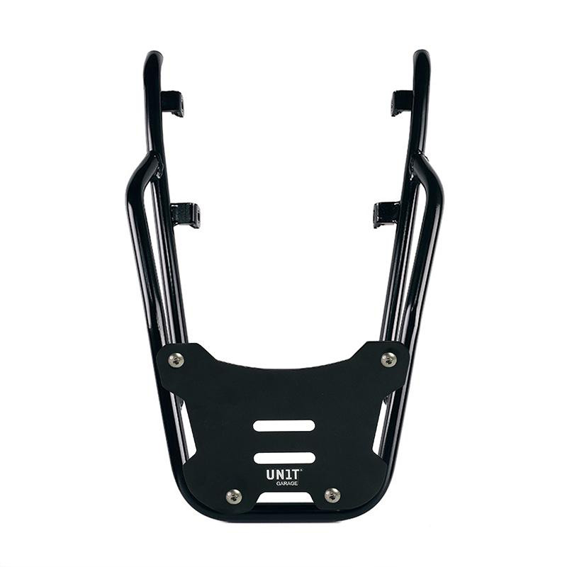 Verstärkter Gepäckträger aus Edelstahl zur Befestigung von Platten oder Topcase (schwarze Farbe)