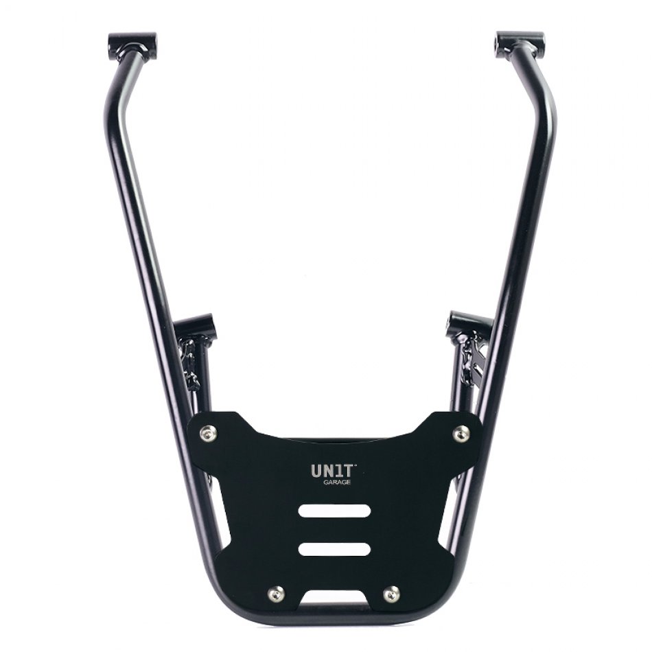 Verstärkter und größerer Gepäckträger aus Stahl zur Befestigung von Platten oder Topcase