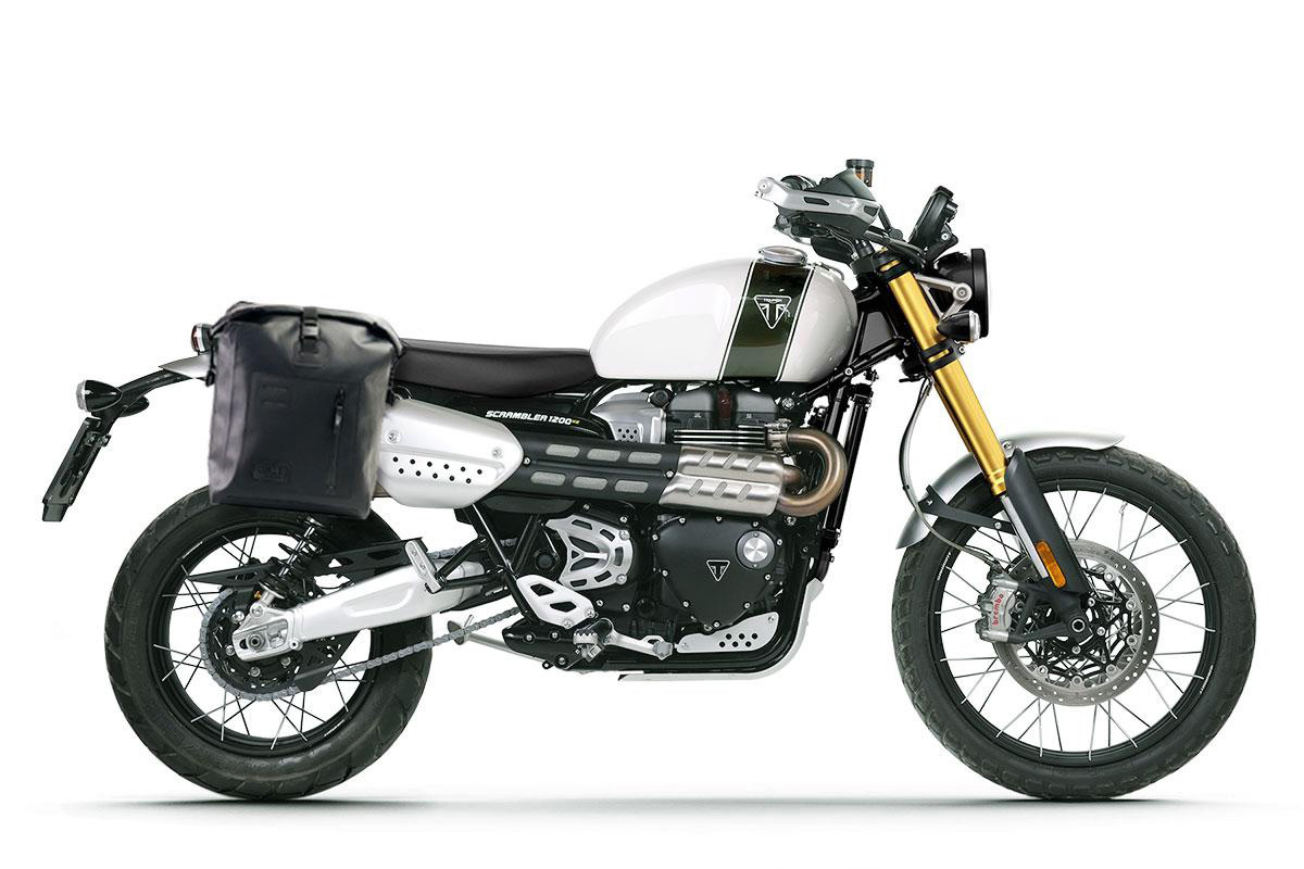 Entworfen auf dem Triumph-Rahmen, integriert es sich perfekt in den Rest des Fahrrads. Bereit zur Aufnahme unseres Schnellbefestigungssystems, schön und minimalistisch, auch wenn die Tasche nicht montiert ist. Es kann bequem mit dem Passagier an Bord genutzt werden.