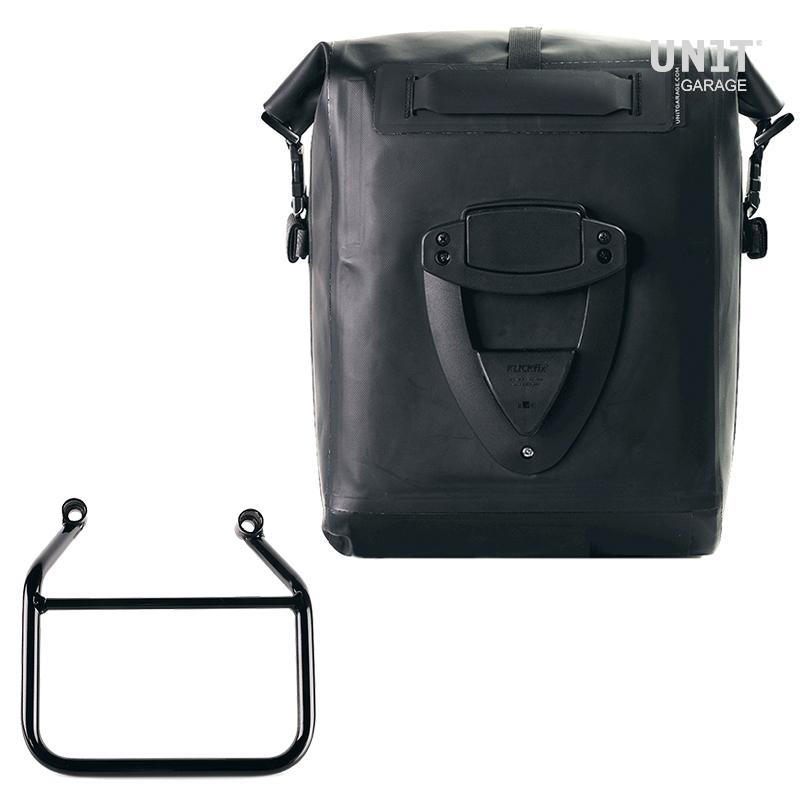 Rechter Rahmen für Taschen mit Schnellkupplung aus Stahl mit mattschwarzer Epoxidpulverbeschichtung.