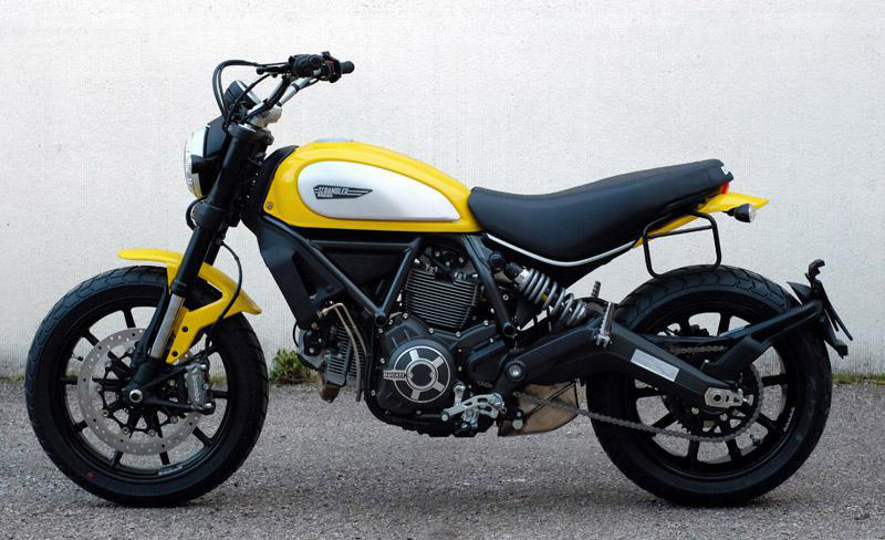 Entworfen auf dem Ducati Scrambler-Rahmen, lässt es sich perfekt in den Rest des Fahrrads integrieren. Bereit für unser schnelles, schönes und minimales Befestigungssystem, auch wenn die Tasche nicht montiert ist. Es kann bequem mit dem Passagier an Bord verwendet werden.