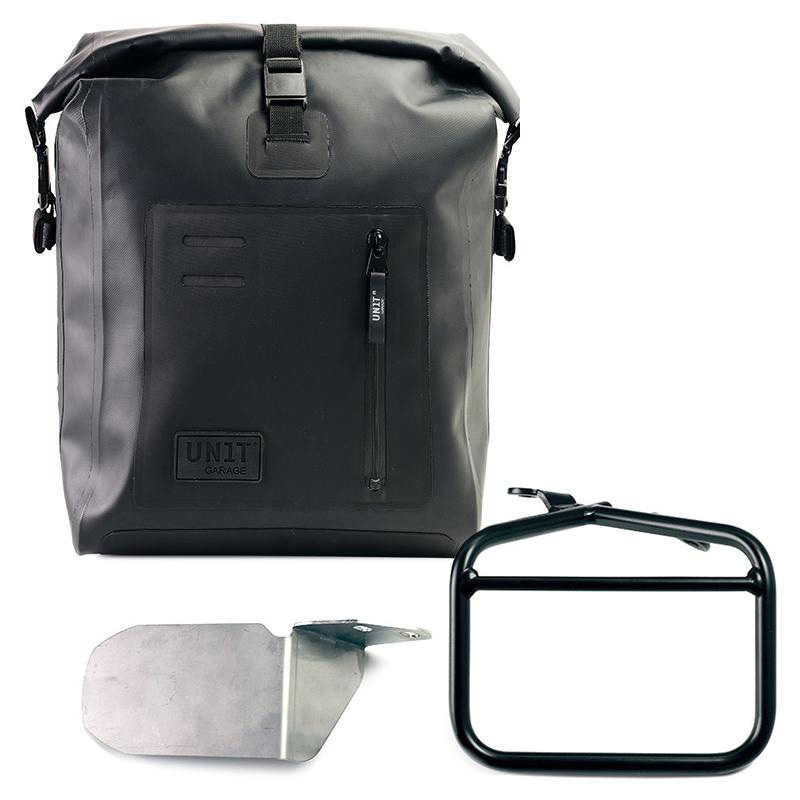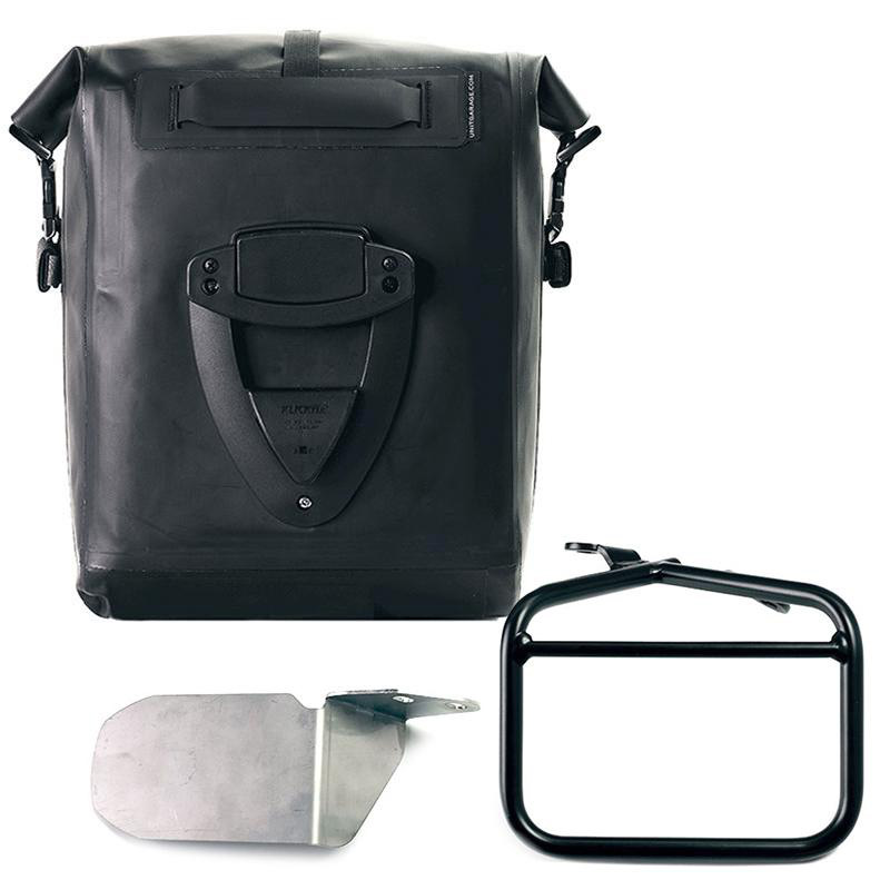 Der Auspuff der Ducati Scrambler ist sehr weit oben angebracht und normalerweise kann eine Tasche mit akzeptabler Größe nicht verwendet werden.
