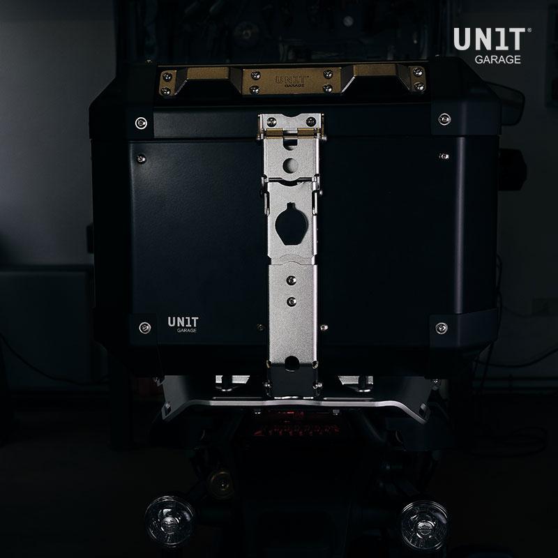 Diese Halterung aus robustem Edelstahl, die speziell für die KTM 890 ADV entwickelt wurde, ermöglicht Ihnen die Montage unserer eloxierten Aluminiumplatte und ihres Topcase. Auch hervorragend geeignet, um bei weichen Taschen eine größere Ladefläche zu haben.