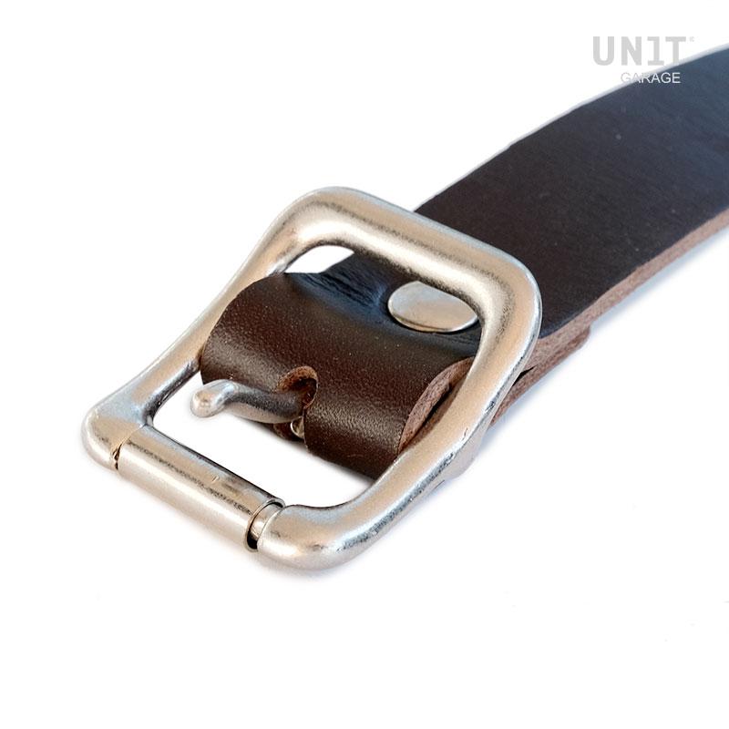 Lederband für die Gepäckablage, erhältlich in zwei Farben, die zu allen unseren schwarzen oder braunen Lederprodukten passen.