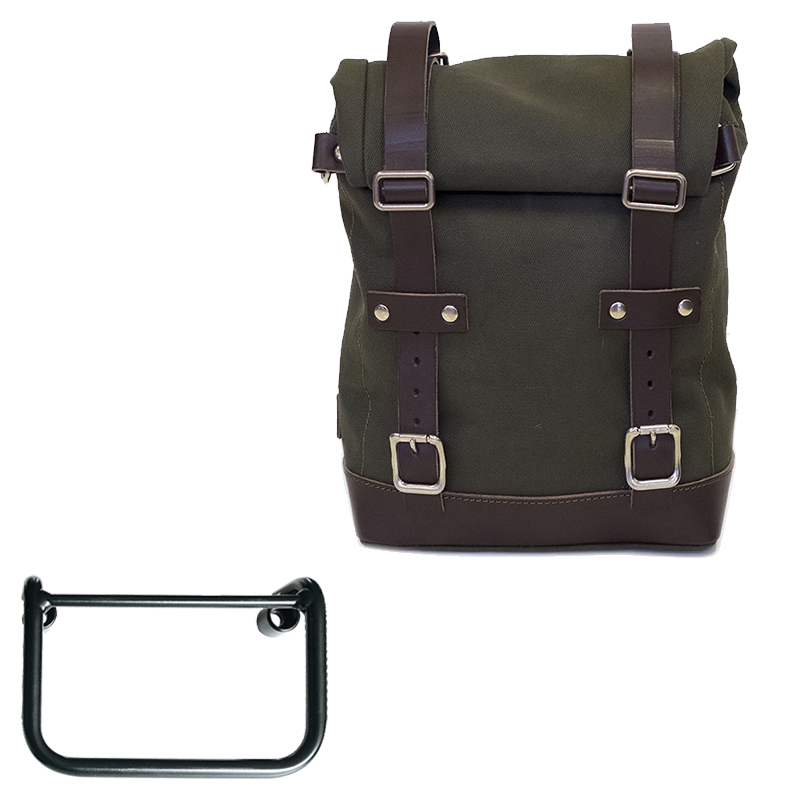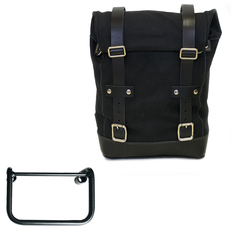 Rechter Rahmen für Taschen mit Schnellkupplung aus Stahl mit mattschwarzer Epoxidpulverbeschichtung.