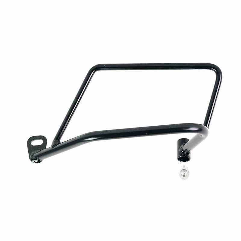 Linker Rahmen aus Stahl, der mit einer opaken, schwarzen Epoxy-Pulverbeschichtung behandelt wurde.