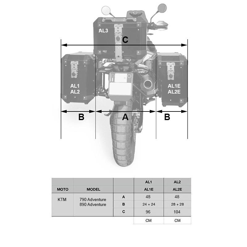 Paar Seitentaschen aus Aluminium. 47L + 41L Version (Auslassseite)