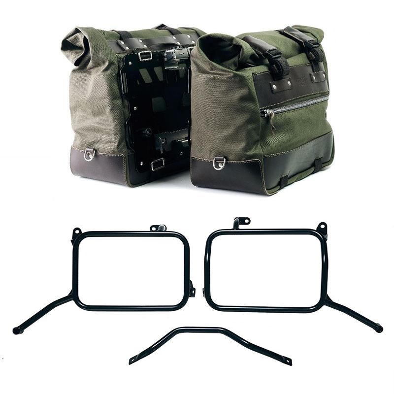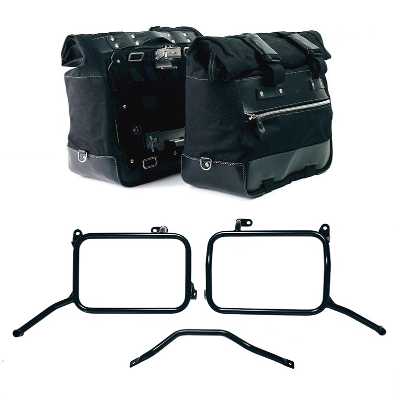 Paar Cult-Seitentaschen aus wasserdichter Baumwolle mit hinteren Aluminiumplatten + Schnellverschluss und Schloss aus Edelstahl