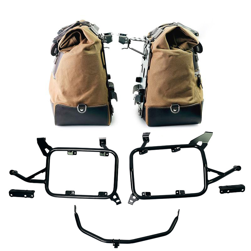 Paar Cult-Seitentaschen aus wasserdichter Baumwolle mit hinteren Aluminiumplatten + Schnellverschluss und Schloss aus Edelstahl