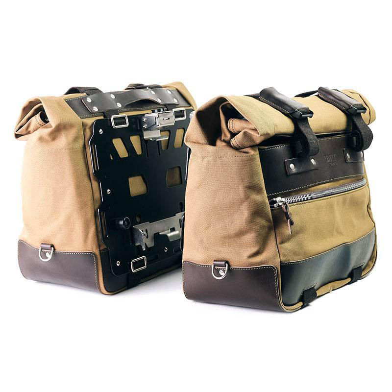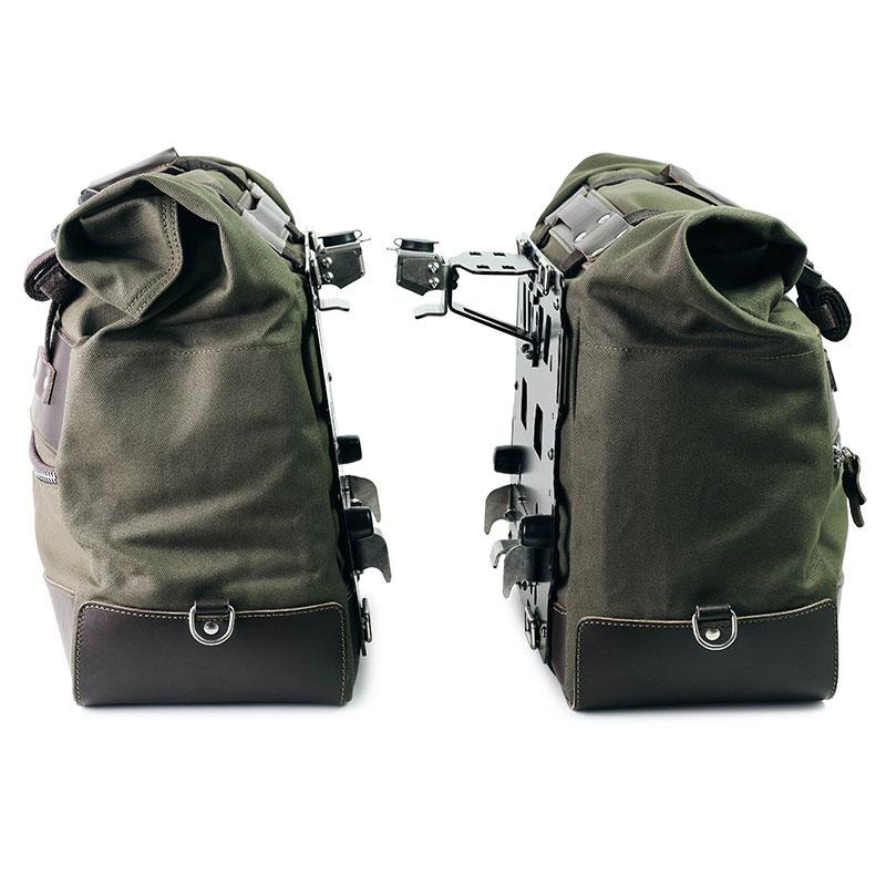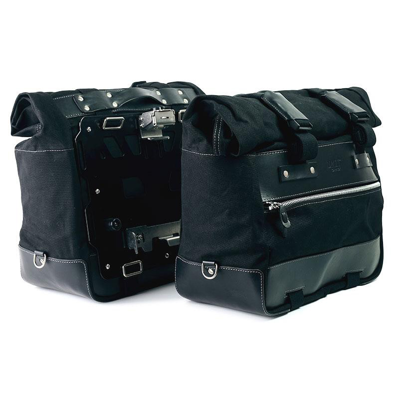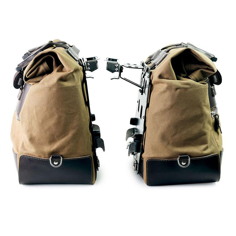 Paar Cult-Seitentaschen aus wasserdichter Baumwolle mit Aluminium-Rückplatten + Edelstahl-Schnellkupplung und Schloss