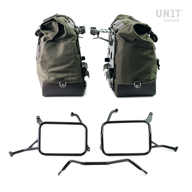 Paar Cult-Seitentaschen aus wasserdichter Baumwolle mit Aluminium-Rückplatten + Edelstahl-Schnellkupplung und Schloss