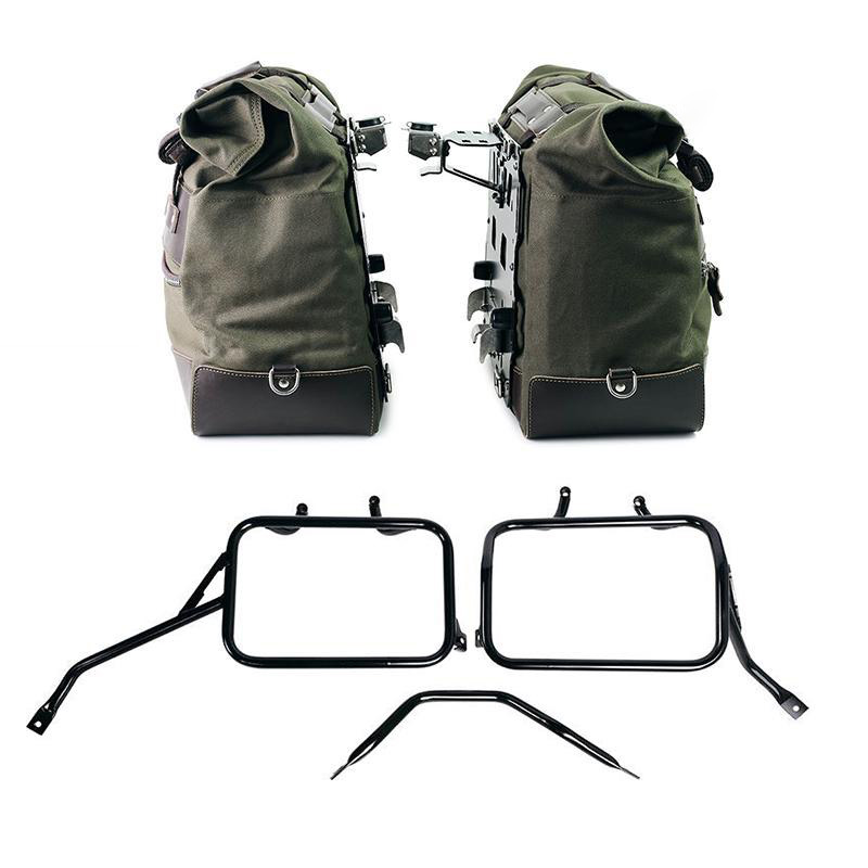 Paar Cult-Seitentaschen aus wasserdichter Baumwolle mit Aluminium-Rückplatten + Schnellkupplung und Schloss aus Edelstahl