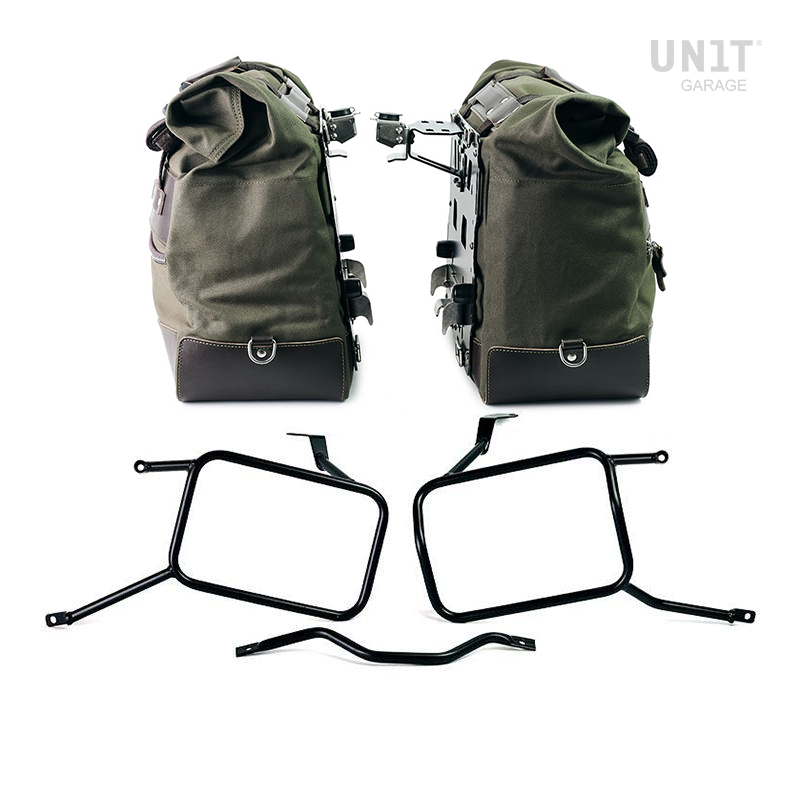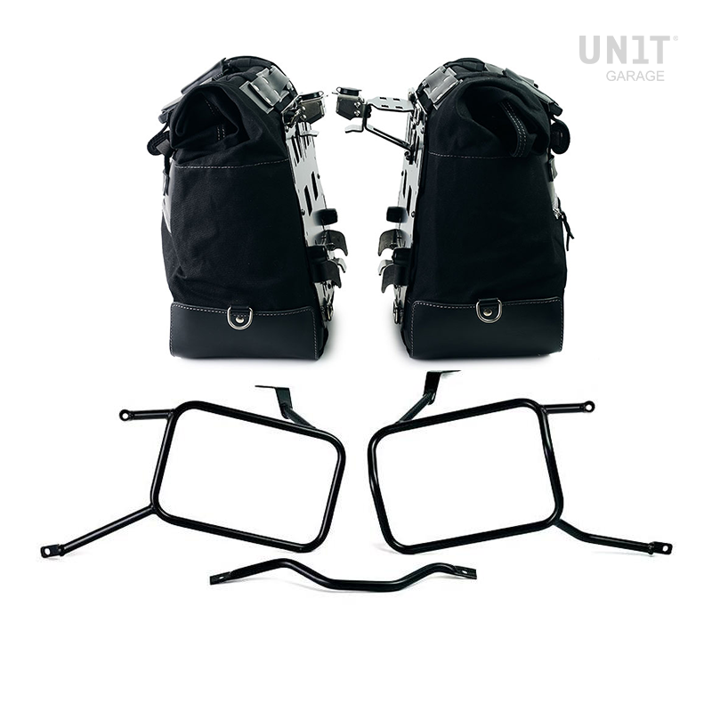 Paar Cult-Seitentaschen aus wasserdichter Baumwolle mit Aluminium-Rückplatten + Edelstahl-Schnellkupplung und Schloss