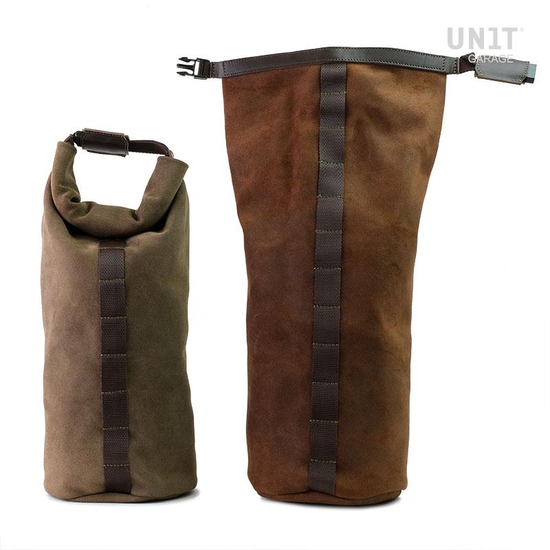 Vergessen Sie alles, was Sie bisher für Bikepacking oder Urban Mobility gesehen haben, Accessoires für Abenteuer ... oder um ins Büro zu gehen! Die Lederkruste und das Leder sind mit 3 mm Lederbesatz und Nähten aus Naturfaden bis ins letzte Detail gepflegt und werden im Laufe der Zeit abgenutzt und erzählen die Geschichte Ihrer Abenteuer. Die Rolle kann mit dem mitgelieferten Gurt (siehe Foto) einfach an jeder Gepäckablage befestigt werden und ist für das Tragen leichter und komprimierbarer Gegenstände ausgelegt. An der Seite finden Sie Passanten, die sich leicht an jede Art von Unterstützung anpassen können. Ideal für den Transport von allem, was Sie für lange Strecken oder zum Packen von Urban Bikes benötigen. Die Kunststoffschnalle ist mit einer verschiebbaren Lederabdeckung ausgestattet, die mit der Gürtelschlaufe verbunden ist, um nicht verloren zu gehen.