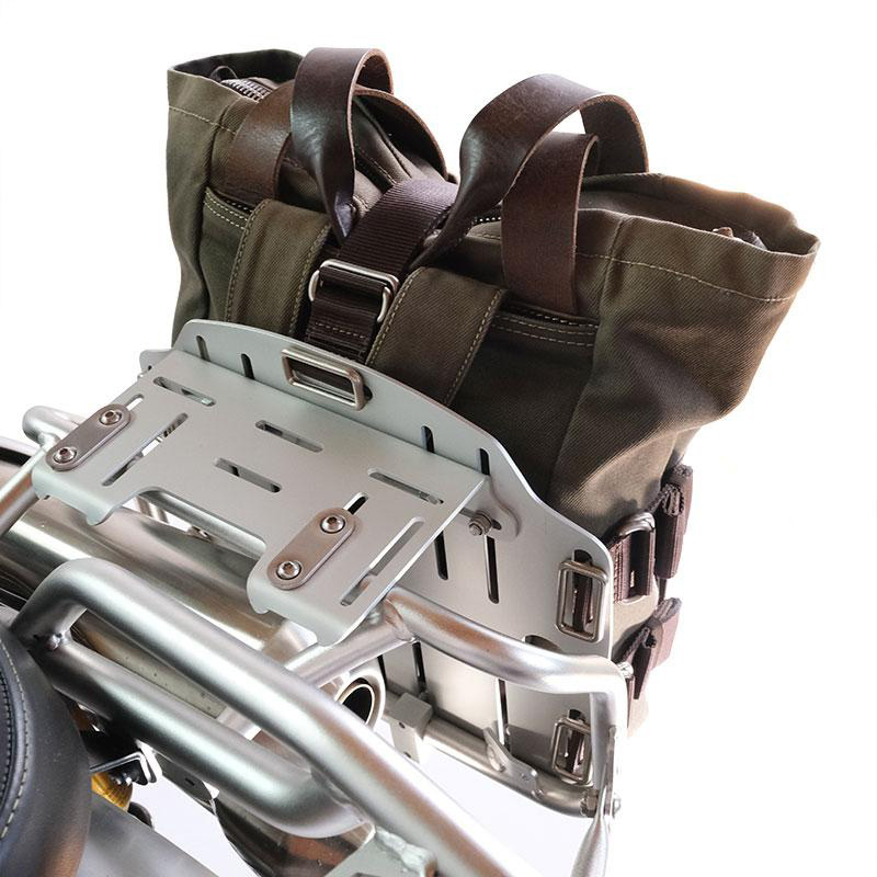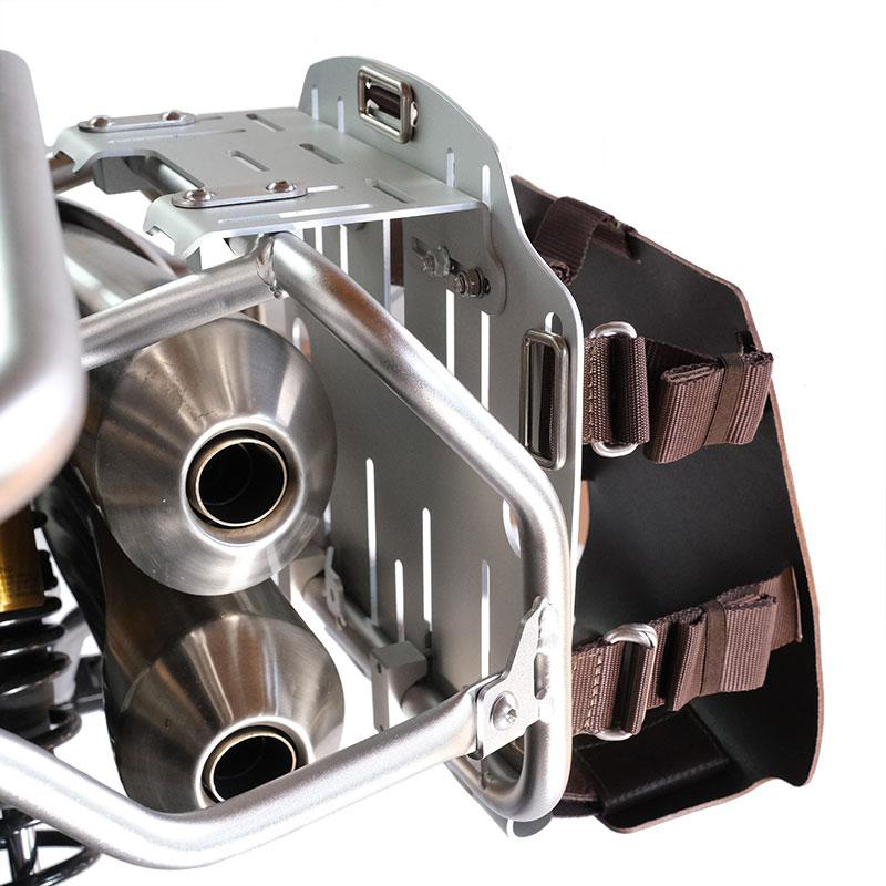 Mit dieser Platte können Sie die Unitgarage Cod.U085-Platte an den Aluminium-Packtaschenrahmen anbringen und so eine flache Montagefläche auf der Auspuffseite des Motorrads schaffen.