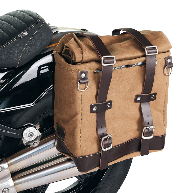Sie ist von unserer klassischen U001-Tasche abgeleitet, aber viel geräumiger und verfügt im Inneren über einen herausnehmbaren Kern aus starrem Material, der auch im leeren Zustand seine Form behält. Liebe zum kleinsten Detail mit 3-mm-Lederoberflächen, schlicht und pur wie die Materialien, aus denen es hergestellt wurde. Mit dem bereits mitgelieferten Schnellverschlusssystem lässt es sich schnell an unserem Taschenhalterrahmen befestigen und ist auf der Rückseite der Tasche montiert, die mit einem Schloss zum Verriegeln am Rahmen selbst ausgestattet ist. Es bietet im Inneren auch Platz für einen Jethelm und ist mit einer großen, von außen zugänglichen Fronttasche mit Reißverschluss ausgestattet. Zum Öffnen ist es nicht notwendig, die vorderen Schnallen zu entfernen, sondern sie einfach zur Seite zu schieben, was sehr schnell und praktisch ist. Um Ihr Gepäck zu schützen und zu organisieren, empfehlen wir die Verwendung der 18-Liter-Mehrzweck-Leichttasche Khali im Inneren.