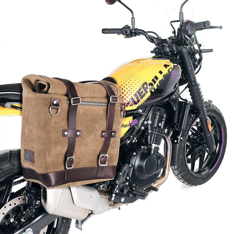 Scram Seitentasche aus Spaltleder 22L-30L + Royal Enfield Guerrilla 450 rechter Rahmen