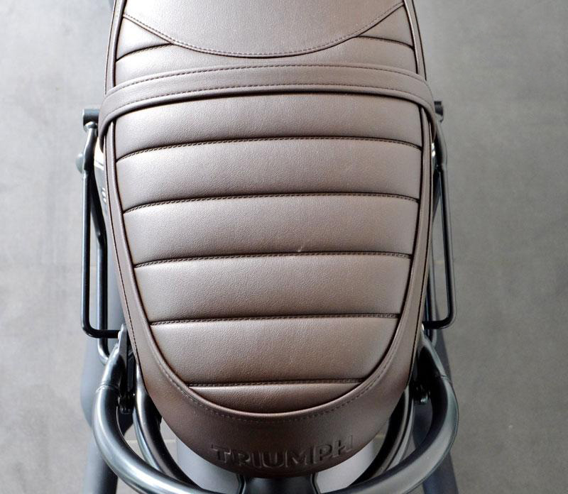 Entworfen auf dem Triumph-Rahmen, fügt es sich perfekt in den Rest des Motorrads ein. Bereit für unser schnelles, schönes und minimales Befestigungssystem, auch wenn die Tasche nicht montiert ist.