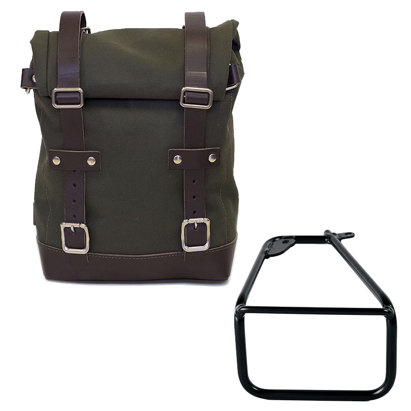 Linker Rahmen für Taschen mit Schnellkupplung aus Stahl mit mattschwarzer Epoxidpulverbeschichtung.