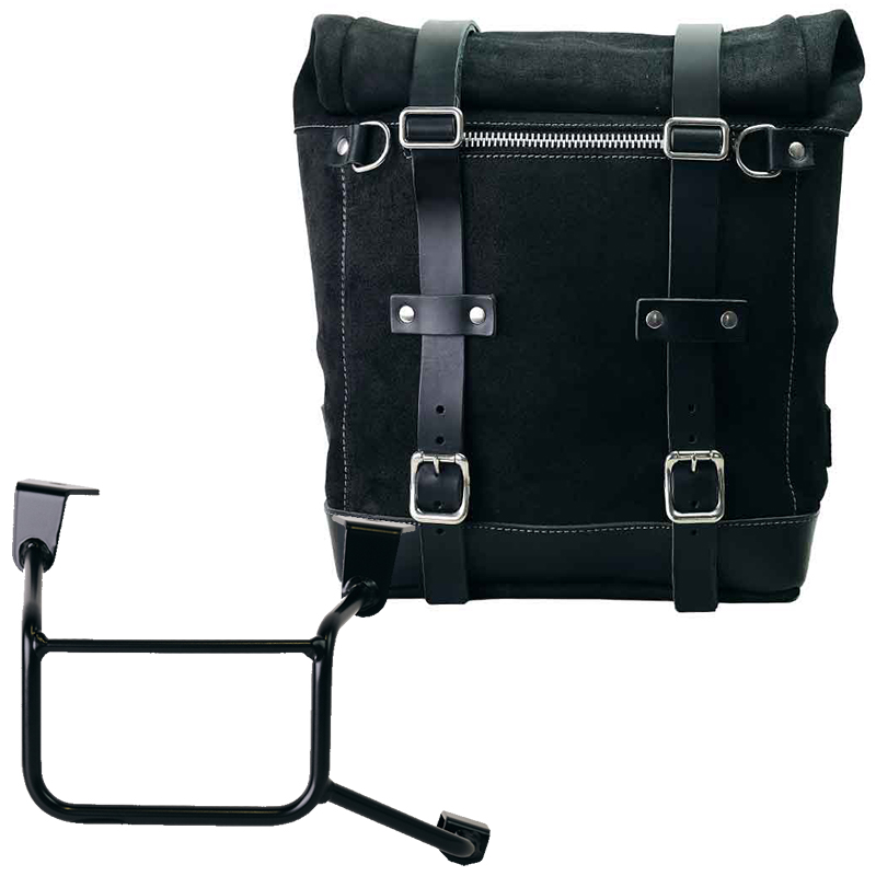 Scram-Seitentasche, erweiterbar von 22 auf 30 Liter, handgefertigt in Italien aus robustem, wasserdichtem Spaltleder von höchster Qualität.