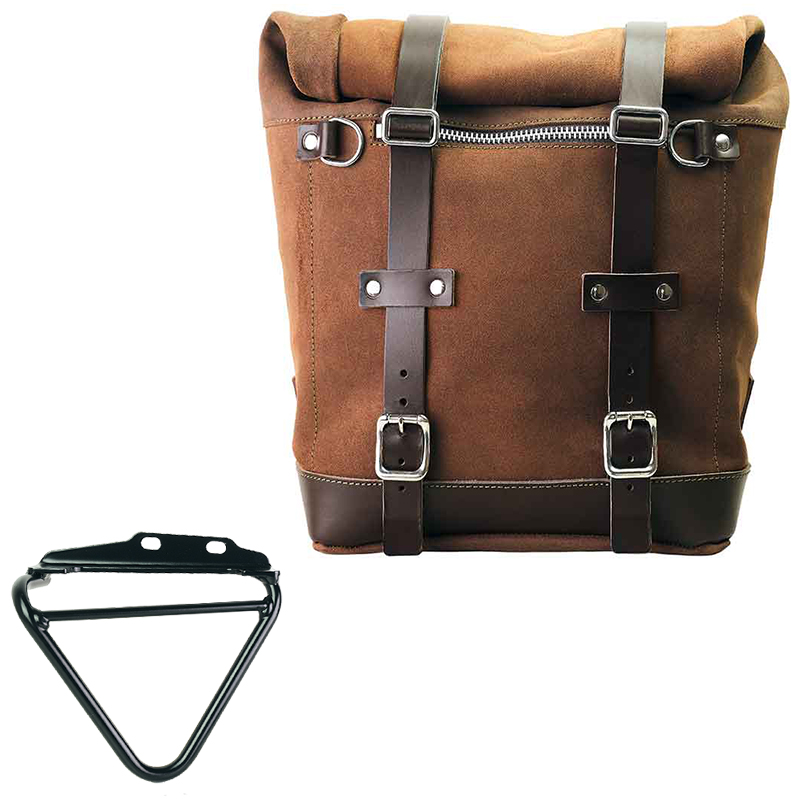 Sie basiert auf unserer klassischen Tasche U002, ist aber deutlich geräumiger und verfügt über einen herausnehmbaren, steifen Innenkern, der auch im leeren Zustand seine Form behält. Sorgfältig gefertigt mit 3 mm starkem Lederbesatz, ist sie so schlicht und pur wie die Materialien, aus denen sie gefertigt ist. Mit dem mitgelieferten Schnellverschlusssystem auf der Taschenrückseite, das auch über ein Schloss zur sicheren Befestigung am Rahmen verfügt, lässt sie sich schnell an unserem Rahmen befestigen. Sie bietet auch Platz für einen Jethelm und verfügt über eine geräumige, von außen zugängliche Fronttasche mit Reißverschluss. Zum Öffnen müssen Sie die vorderen Schnallen nicht entfernen; schieben Sie sie einfach zur Seite – das geht schnell und bequem. Zum Schutz und zur Organisation Ihres Gepäcks empfehlen wir die Verwendung der Khali Light Multipurpose 18L Bag im Inneren.