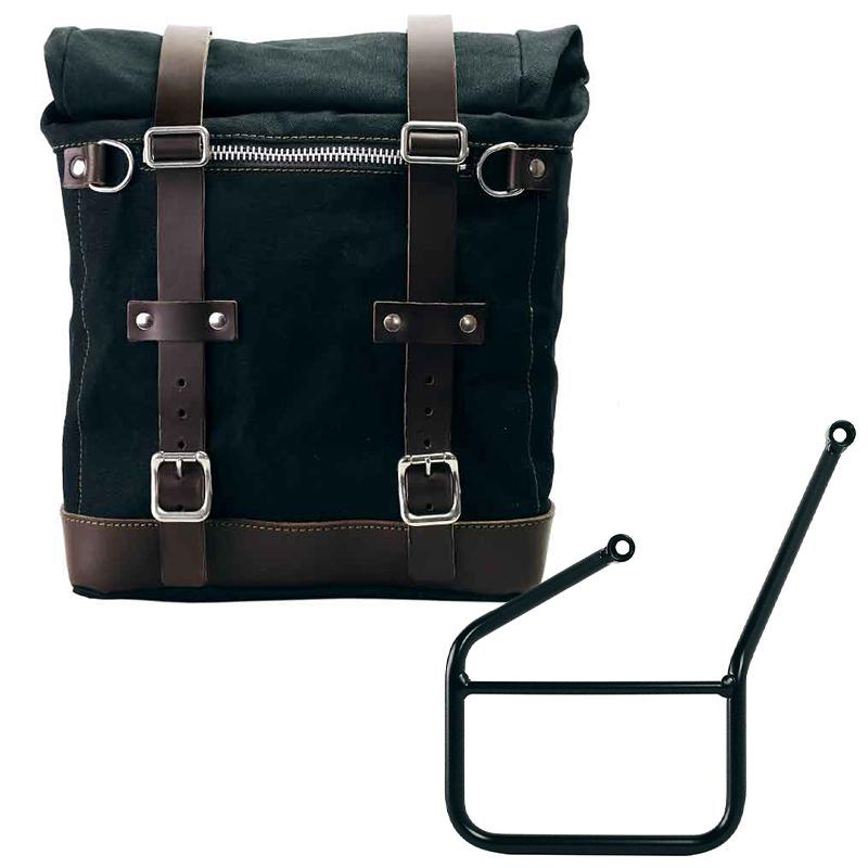 Mit Liebe zum kleinsten Detail mit 3-mm-Lederoberflächen, einfach und rein wie die Materialien, aus denen es gebaut wurde. Es lässt sich schnell an unserem Taschenhalterrahmen mit dem auf der Rückseite der Tasche angebrachten Schnellverschlusssystem befestigen, das mit einem Schloss zum Verriegeln am Rahmen selbst ausgestattet ist. Es kann einen 15-Zoll-Laptop im Inneren aufnehmen und ist mit einer großen Reißverschlusstasche für Telefon und Dokumente ausgestattet.