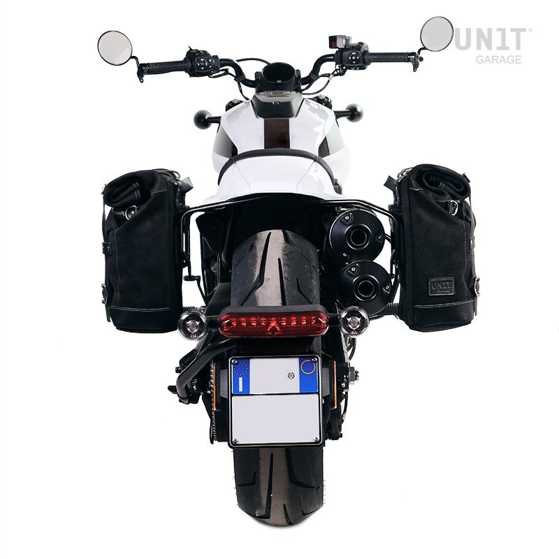 Entworfen auf dem Rahmen der Sportster S 1250, fügt es sich perfekt in den Rest des Fahrrads ein. Bereit für unser schnelles, schönes und minimales Befestigungssystem, auch wenn die Tasche nicht montiert ist. Es kann bequem mit dem Passagier an Bord verwendet werden.