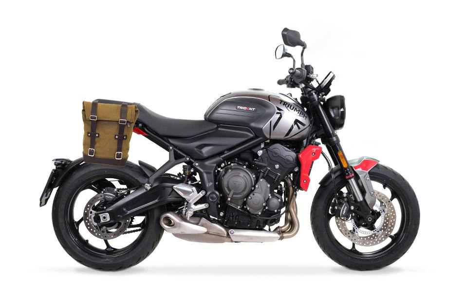 Entworfen auf dem Triumph-Rahmen, integriert es sich perfekt in den Rest des Fahrrads. Bereit zur Aufnahme unseres Schnellbefestigungssystems, schön und minimalistisch, auch wenn die Tasche nicht montiert ist. Es kann bequem mit dem Passagier an Bord genutzt werden.