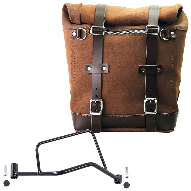 Scram-Seitentasche, erweiterbar von 22 auf 30 Liter, handgefertigt in Italien aus robustem, wasserdichtem Spaltleder von höchster Qualität.