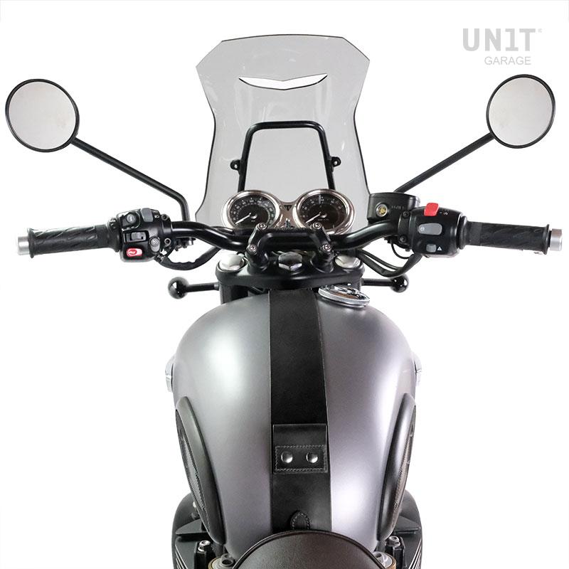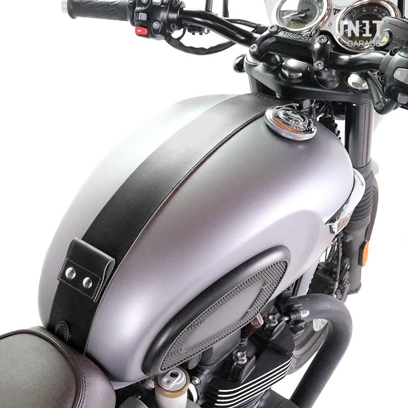 Tankband aus vollnarbigem Leder und mit Nylonfaden vernäht, komplett mit Befestigungssystem. Handgefertigt in Italien. Es verleiht dem Tank einen Vintage-Stil und ermöglicht die Montage unseres Telefonhalters Code: 1607 oder der Tasche Code: 122509_04 Farben: Braun und Schwarz