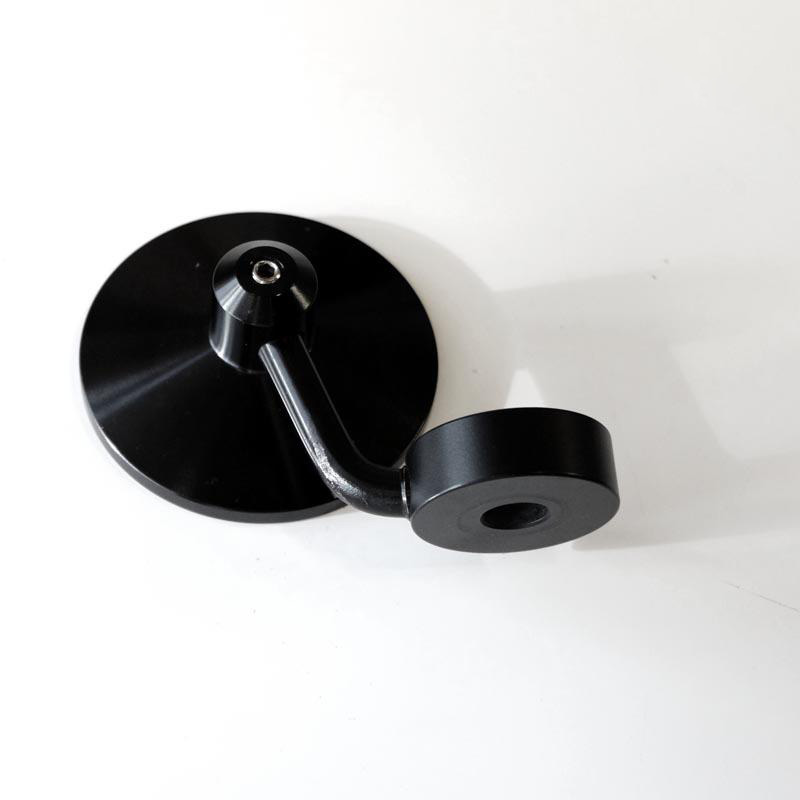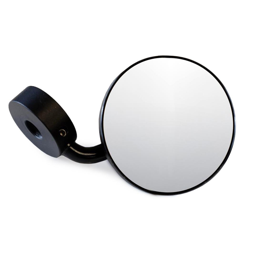 Gefertigt aus Aluminium (CNC gefräst), anschließend schwarz eloxiert. Spiegel wird einzeln geliefert und kann individuell auf der rechten oder linken Seite des Lenkers angebracht werden. Sehr minimalistisches und beinahe unsichtbares Design. Spiegeldurchmesser 72 mm. Ohne E-Nummer.