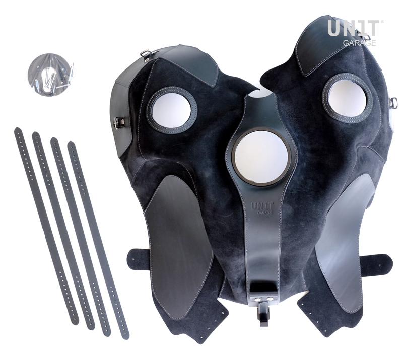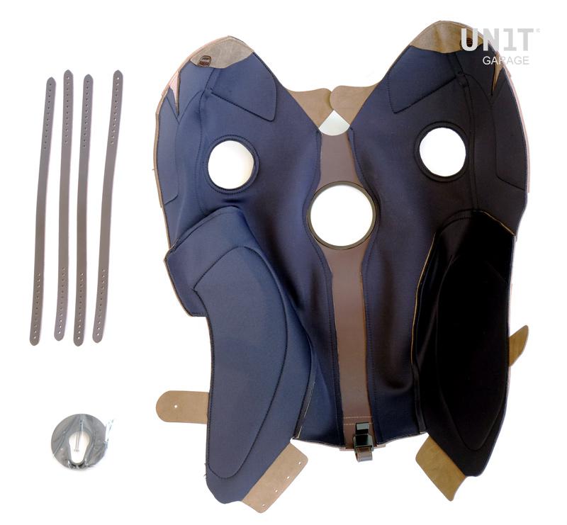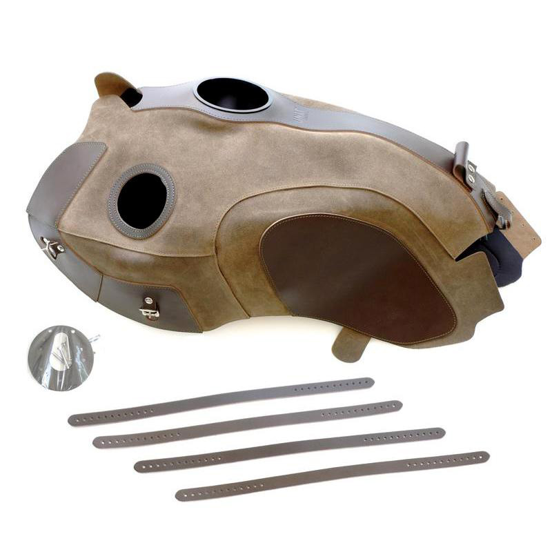 Tankabdeckung aus strapazierfähigem Leder. Handgefertigt in Italien in höchster Qualität. Nachbehandelt mit Wachs und somit resistent gegen Wasser. Erhältlich in zwei Farben. Der Überzug ist von innen gepolstert und schützt den Tank vor Stößen und Kratzern. Die Lederabdeckung wird so installiert, dass sie gegen Wegnahme gesichert ist.
